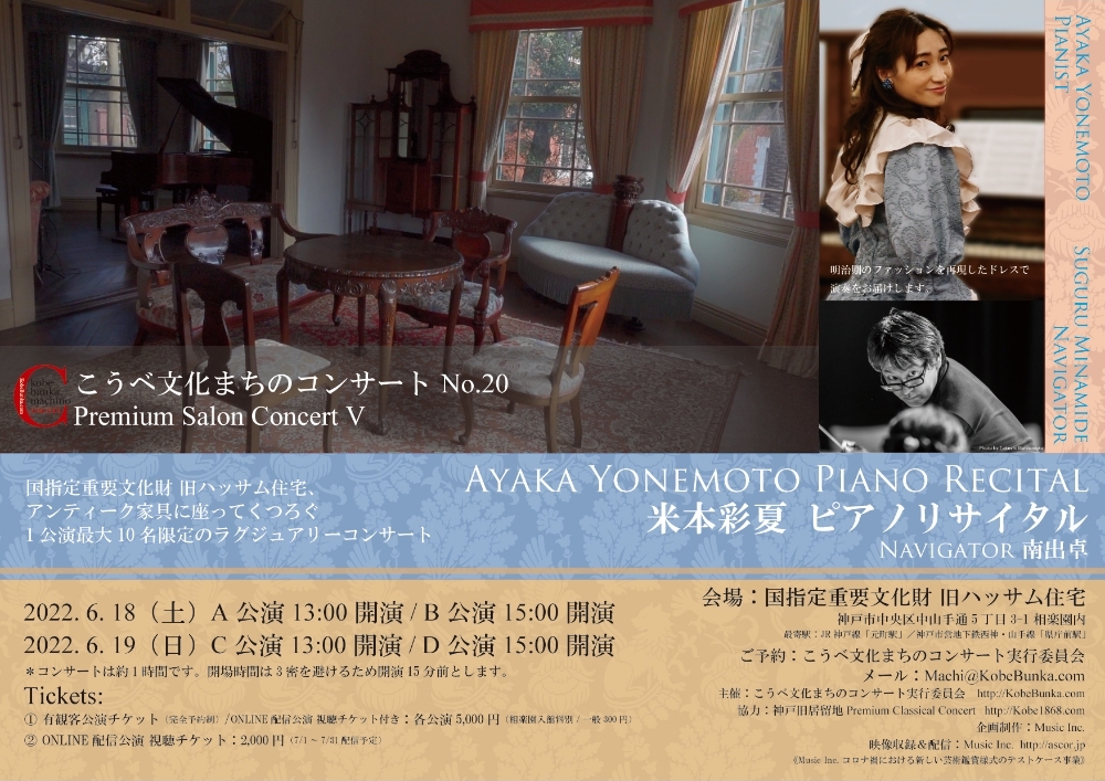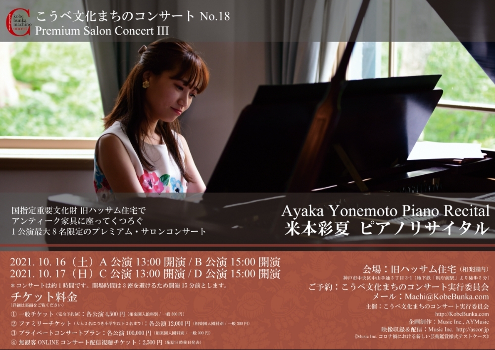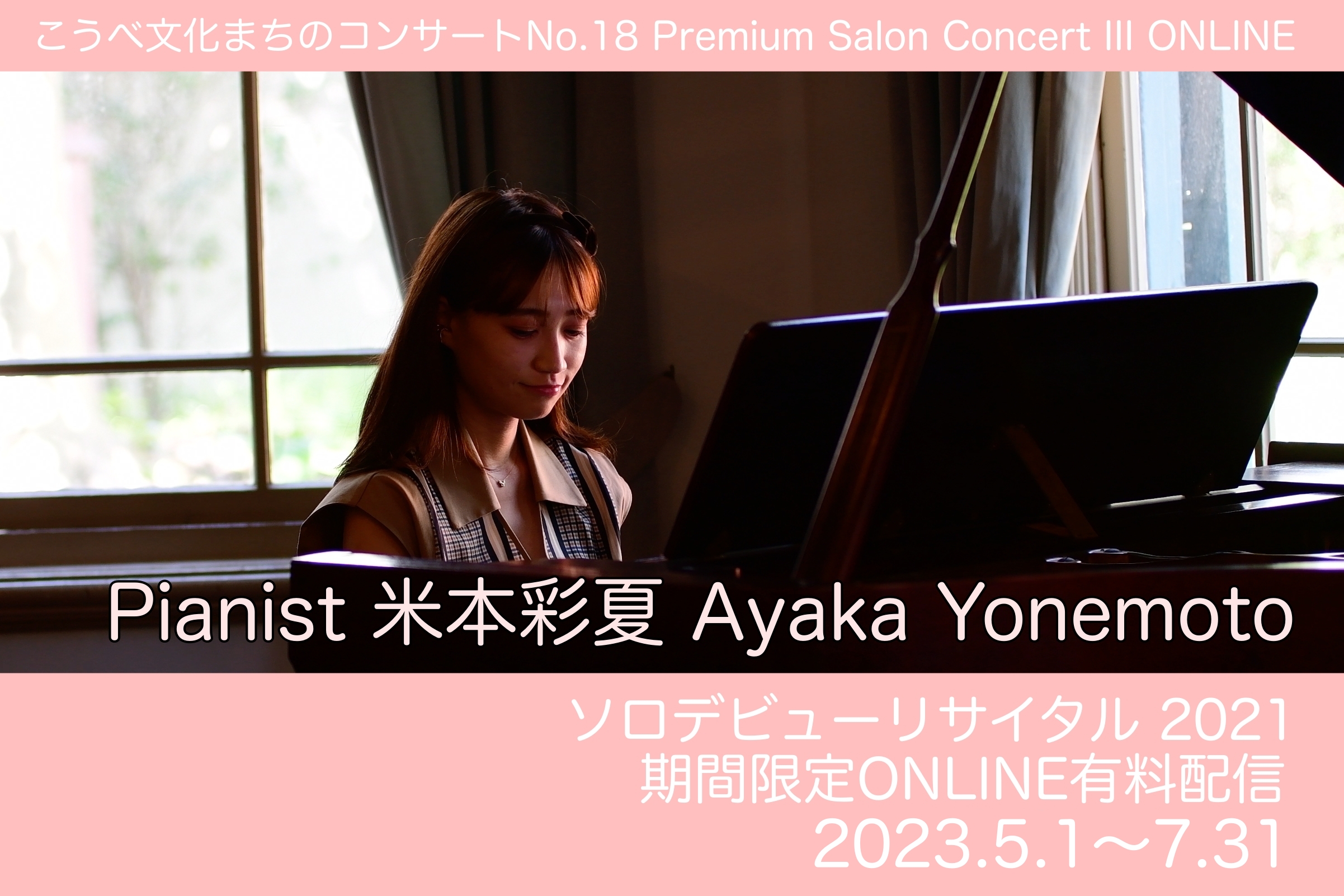 2021年に出演させていただき完売公演となった私のソロデビュー公演『こうべ文化まちのコンサート No.18 Premium Salon Concert III 米本彩夏ソロリサイタル』でONLINE配信用に収録した演奏映像を期間限定で有料配信します!